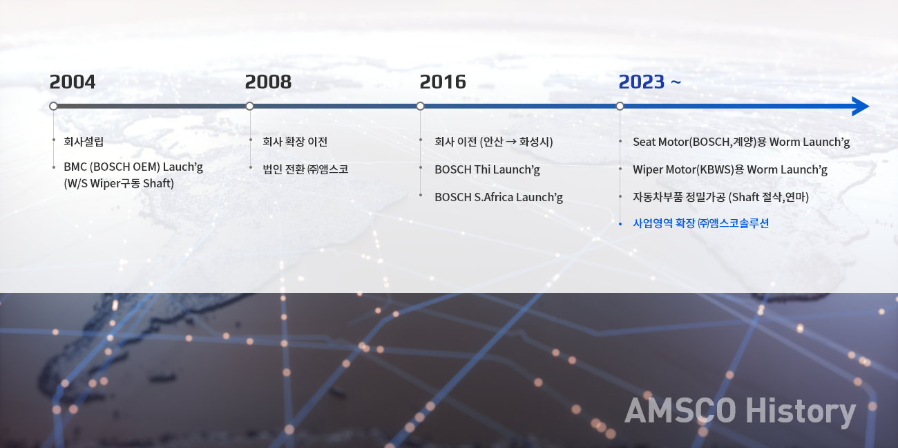 (주)앰스코는 2004년 설립된 차량용 소형 Shaft 제조의 글로벌 전문 회사입니다.